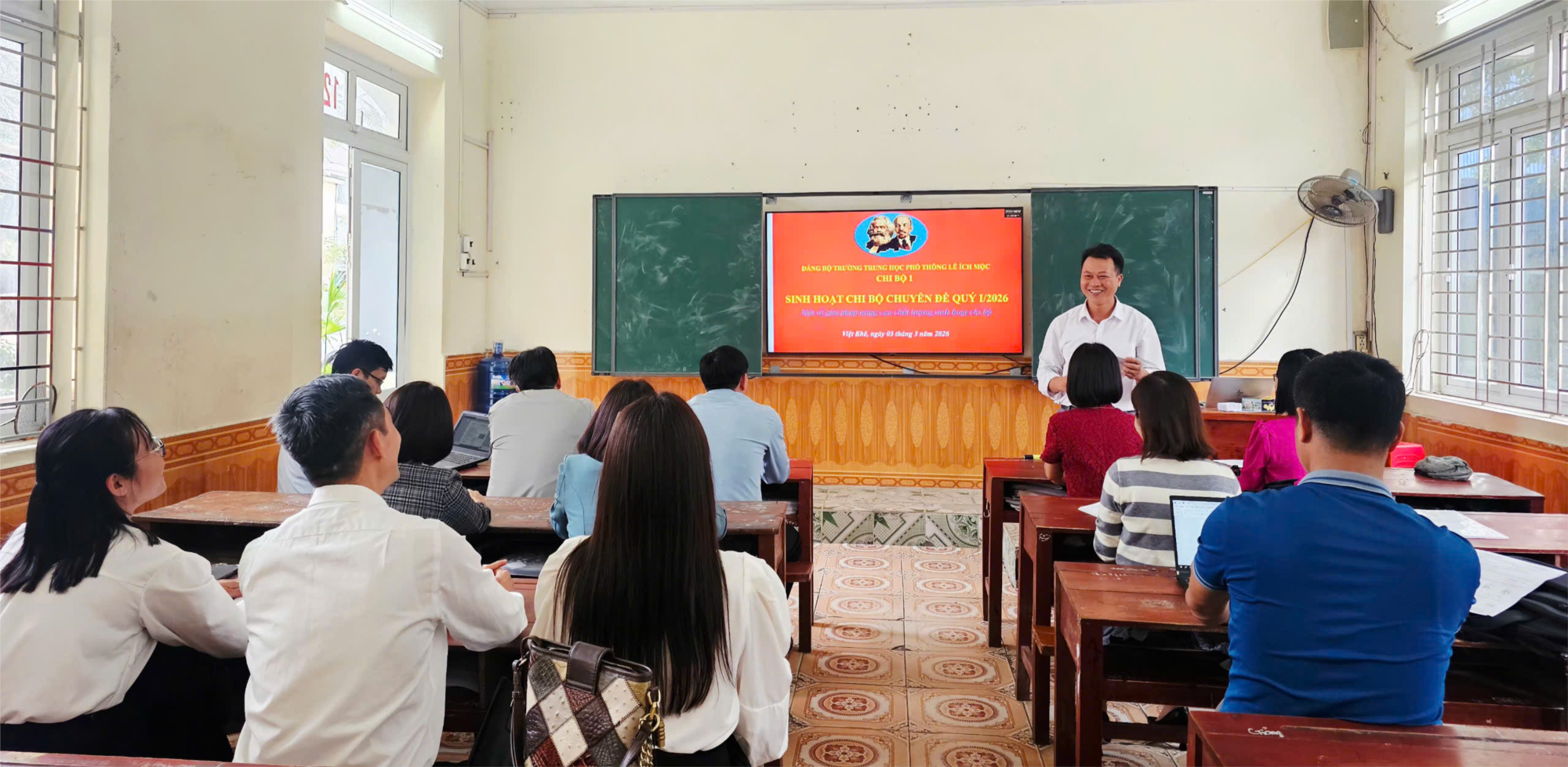 Ngày 03/03/2026, Chi bộ 1 thuộc Đảng bộ trường THPT Lê Ích Mộc đã tổ chức buổi sinh hoạt chi bộ thường kỳ tháng 03 và sinh hoạt chi bộ chuyên đề quý 1 năm 2026 theo đúng quy định và hướng dẫn của Đảng ủy nhà trường. Buổi sinh hoạt diễn ra trong không khí nghiêm túc, dân chủ, đoàn kết, với sự tham dự đầy đủ của 14/14 đảng viên trong chi bộ.