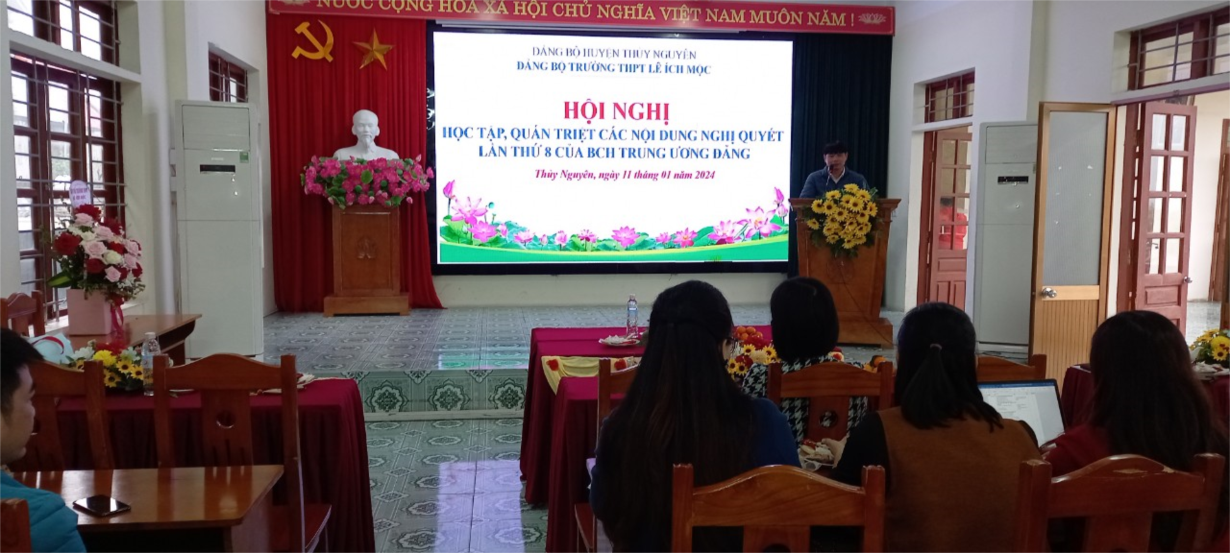 Ngày 11/01/2024, Đảng bộ trường THPT Lê Ích Mộc tổ chức Hội nghị học tập, quán triệt các nội dung Nghị quyết lần thứ 8 của BCH trung ương. Tại hội nghị, dưới sự chỉ đạo và phổ biến của đồng chí phó bí thư Đảng bộ, các đảng viên được tiếp thu những nội dung của Nghị quyết lần thứ 8 của BCH trung ương Đảng, từ đó thực hiện tại đơn vị.