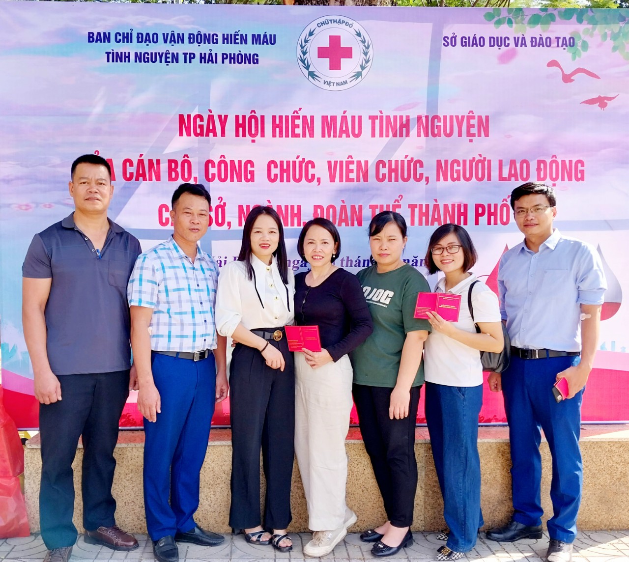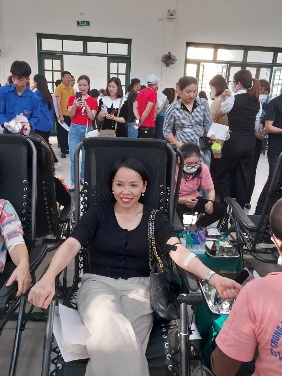 Cán bộ giáo viên trường THPT Lê ích Mộc tình nguyện tham gia hiến máu