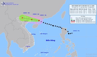 07 giờ ngày 25/8, vị trí tâm bão ở khoảng 21,1 độ Vĩ Bắc; 112,1 độ Kinh