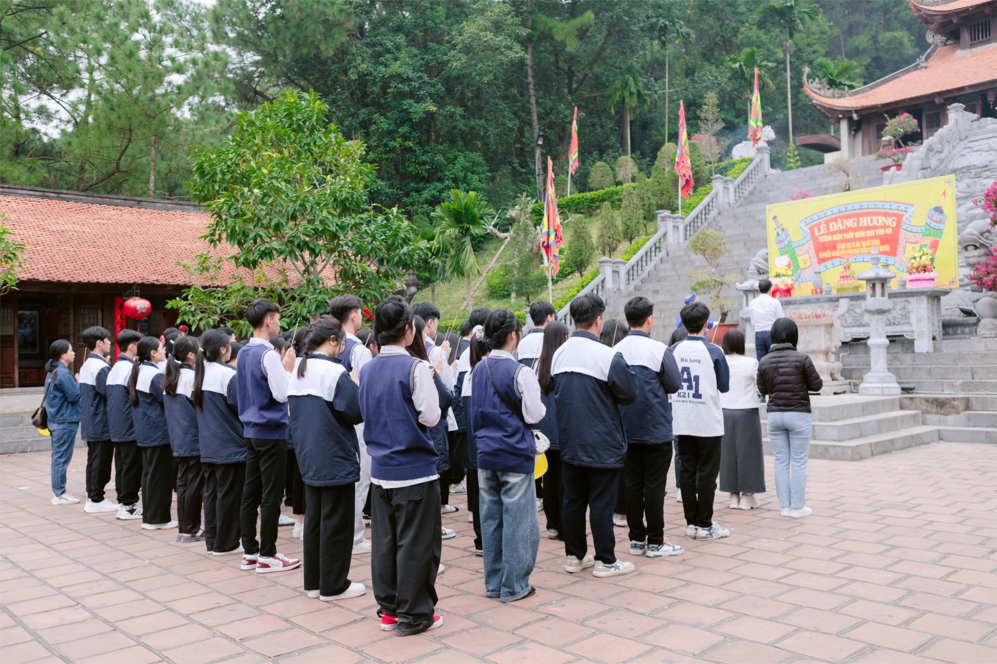 Tại đền thờ thầy giáo Chu Văn An, thầy và trò dâng hương tưởng niệm người thầy đáng kính, người thầy giáo của muôn đời, biểu tượng của sự liêm chính, tinh thần hiếu học và vì thế hệ mai sau.