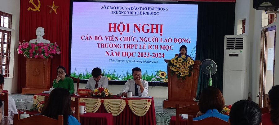 Ngày 18-10-2023, trường THPT Lê Ích Mộc long trọng tổ chức Hội nghị cán bộ viên chức và người lao động năm học 2023-2024. Đến dự có đồng chí Đỗ Văn Lợi - phó giám đốc Sở Giáo dục, các đồng chí phòng phổ thông, đại diện hội cha mẹ học sinh, toàn thể cán bộ giáo viên và nhân viên nhà trường.
