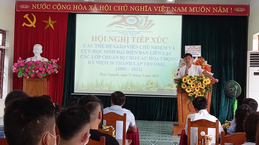 Chủ Nhật, ngày 25-09-2022, trường THPT Lê Ích Mộc long trọng chào đón các thế hệ cựu giáo viên chủ nhiệm đã từng công tác và cựu học sinh đại diện ban liên lạc các lớp đã từng học tập tại trường về tiếp xúc để chuẩn bị cho các hoạt động kỷ niệm 20 năm thành lập trường 2002-2022.