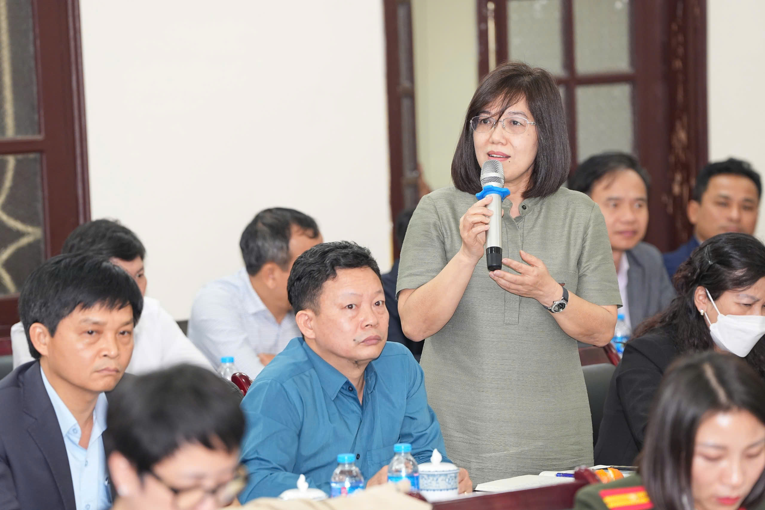 Cô Cao Tố Nga, Hiệu trưởng Trường THPT Ngô Quyền phát biểu tại cuộc làm việc.Tại
