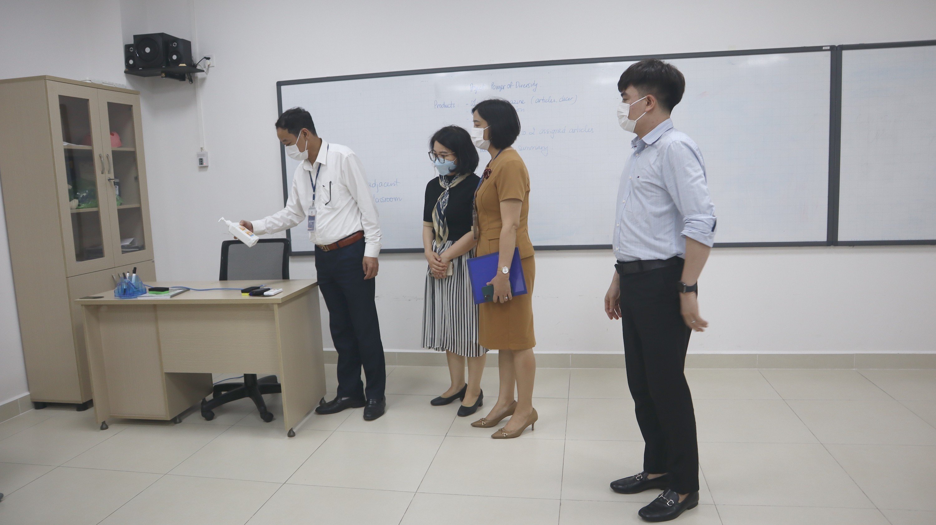 giáo viên, nhân viên, học sinh thực hiện các yêu cầu phòng chống dịch.