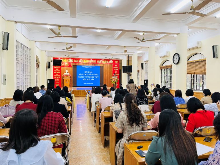 Ảnh 1: Hội thảo ôn thi tốt nghiệp môn Ngữ văn (tổ chức tại trường THPT Thái Phiên)