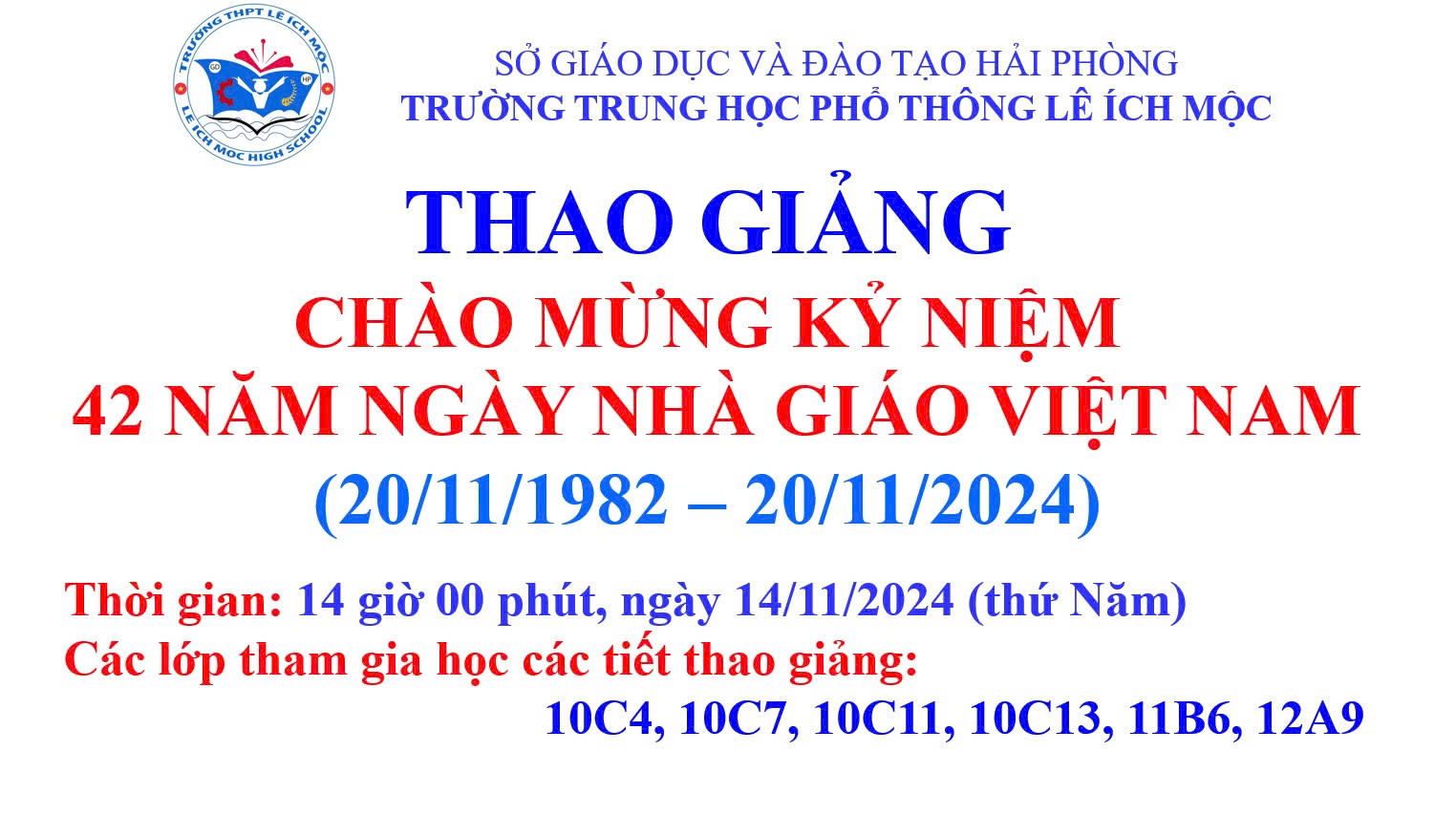 Chiều nay, ngày 14 tháng 11 năm 2024, Trường THPT Lê Ích Mộc tổ chức 06 tiết dạy thao giảng. Trong các giờ dạy, các thầy (cô) đã bám sát nội dung, mục tiêu chương trình và bài học; sử dụng đa dạng các phương pháp, kỹ thật dạy học, tích cực ứng dụng CNTT; sử dụng thiết bị, đồ dùng; áp dụng các trường hợp, tình huống thực tế vào các câu hỏi, bài tập …làm sinh động nội dung tiết dạy.