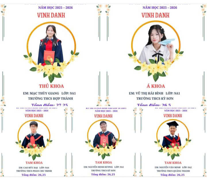 CHÚC MỪNG CÁC THỦ KHOA - Á KHOA - TAM KHOA TRONG KỲ THI TUYỂN SINH VÀO LỚP 10 NĂM HỌC 2025 – 2026